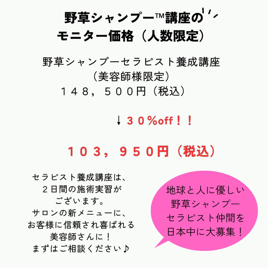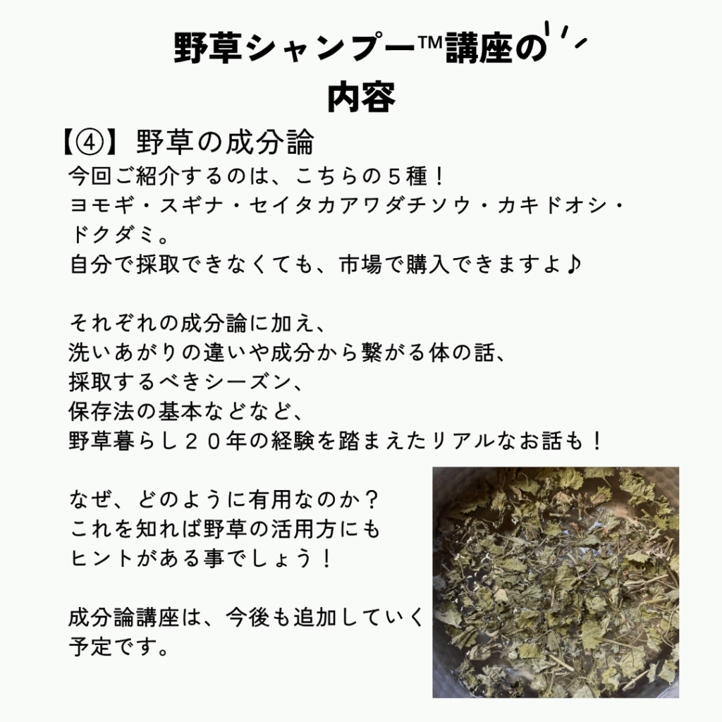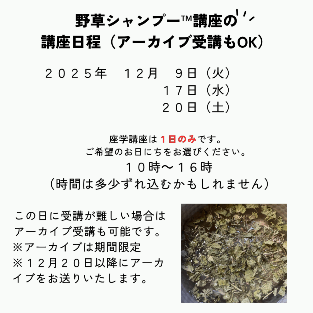 ようやく温めてきた「野草シャンプー™講座」を12月よりスタートすることになりました。