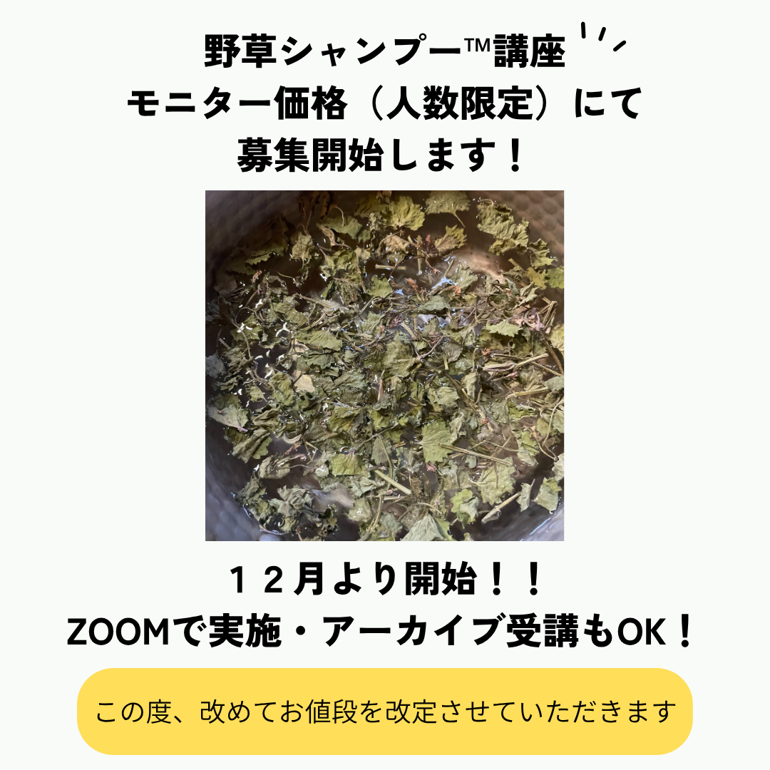 先日、告知開始させていただいた野草シャンプー™講座。